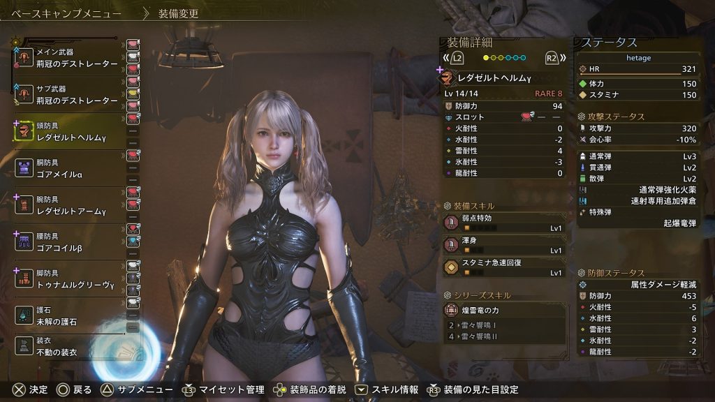 これがワイルズ始めた時に使ってたハンターで、上に書いたスージャが綺麗だと思っていた時に撮ったものです。